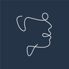 • Outline graphic of a human head and brain with a profile of a face in side view, drawn with white lines on a black background.